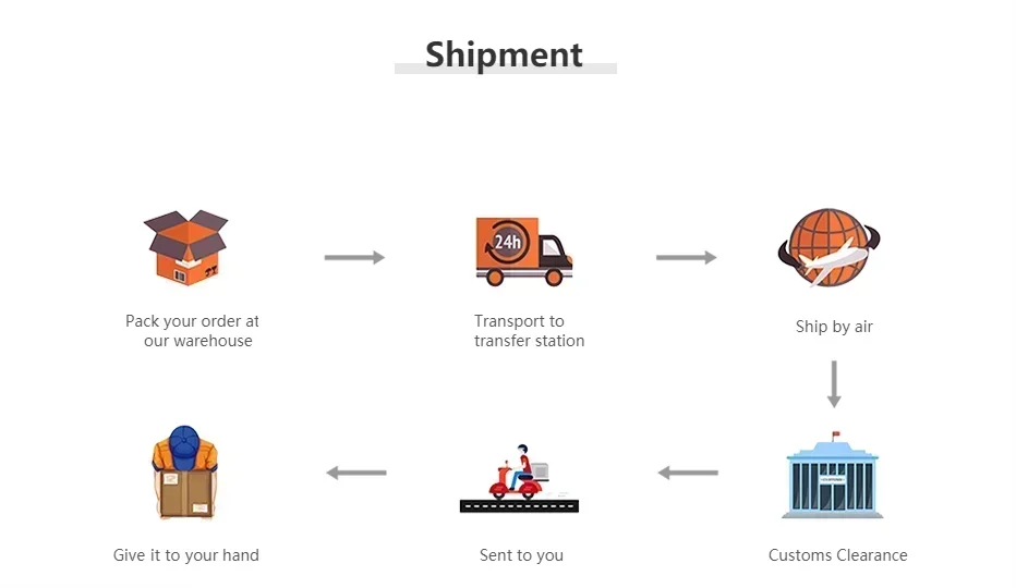1.We will pack and ship the parcel asap. And there will be a little delay when holidays.